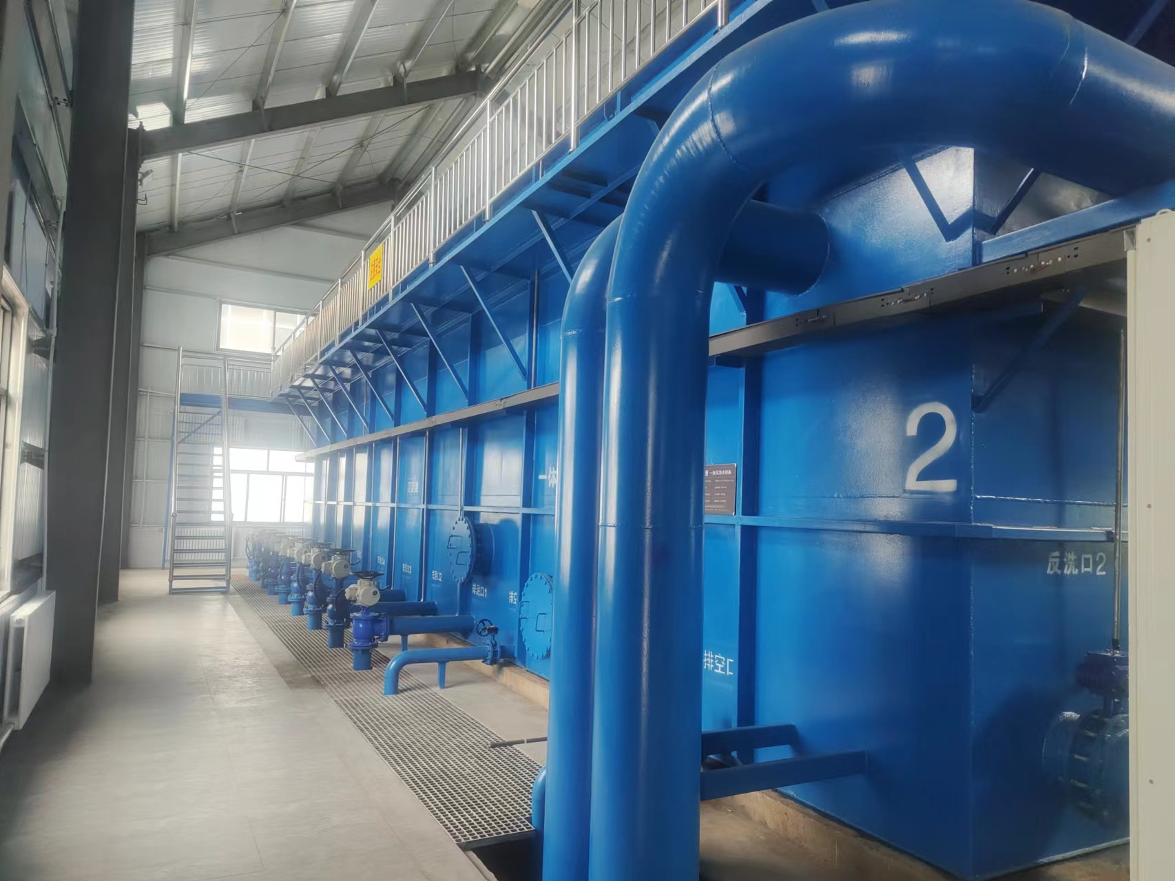 重力式无法过滤器对沉淀器出水进行深度过滤处理,采用先进的水力全自动运行方式。